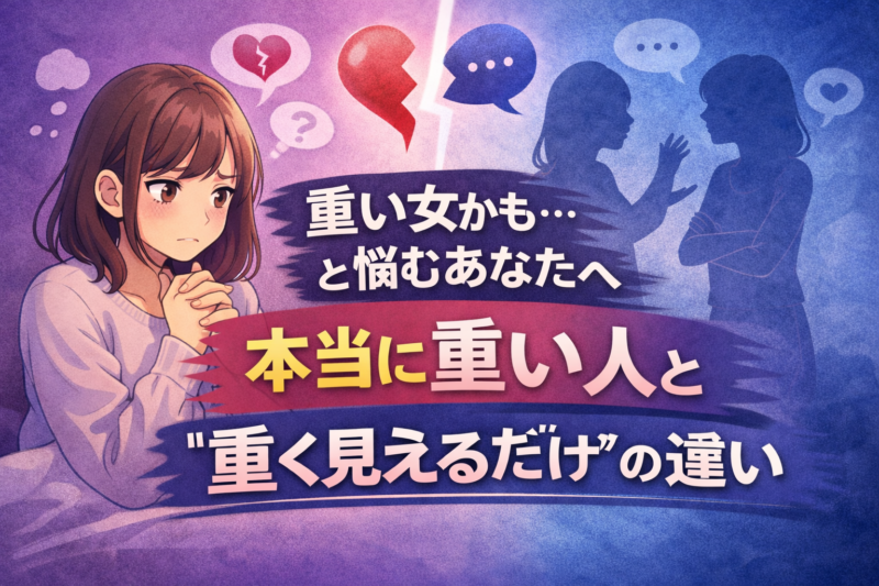「重い」と感じてしまう瞬間とは 「私って重い女なのかもしれない」 ふとした瞬間に、そんな不安がよぎることはありませんか? 例えばこんな瞬間です。 ・相手にしてほしいことばかりが浮かぶ ・相手の都合より、自分を優先してほしい気持ちが強くなる ・... -